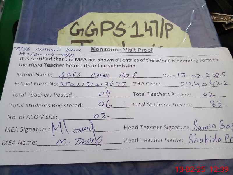 | EMIS Code: 31340422 | Name of School: GGPS 147 P | |||