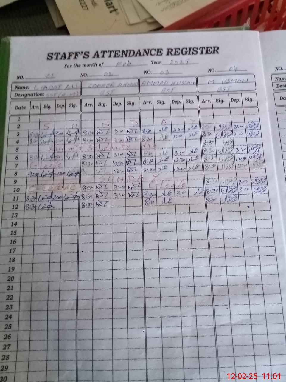 | CNIC | Full Name | Designation | R/C | Absence During Last Calender Month |
