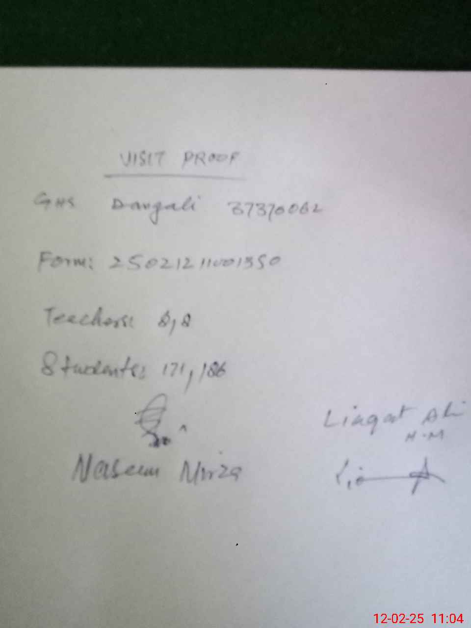 | EMIS Code: 37370062 | Name of School: GHS DANGALI | |||