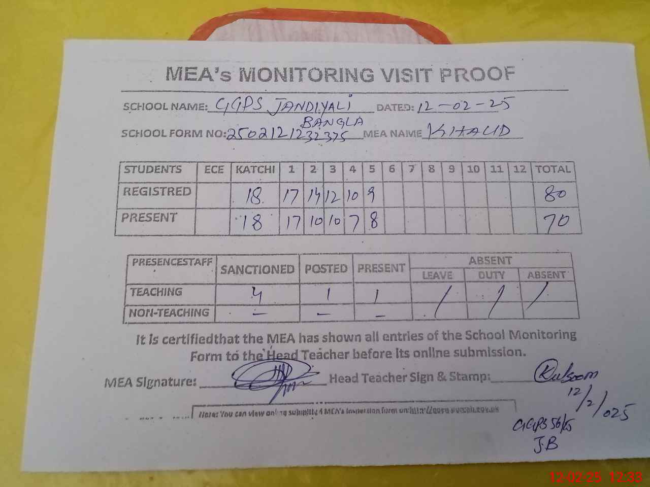 | EMIS Code: 36430517 | Name of School: GGPS JANDIYALI BANGLA , 56/15-L MIAN CHANNU | |||