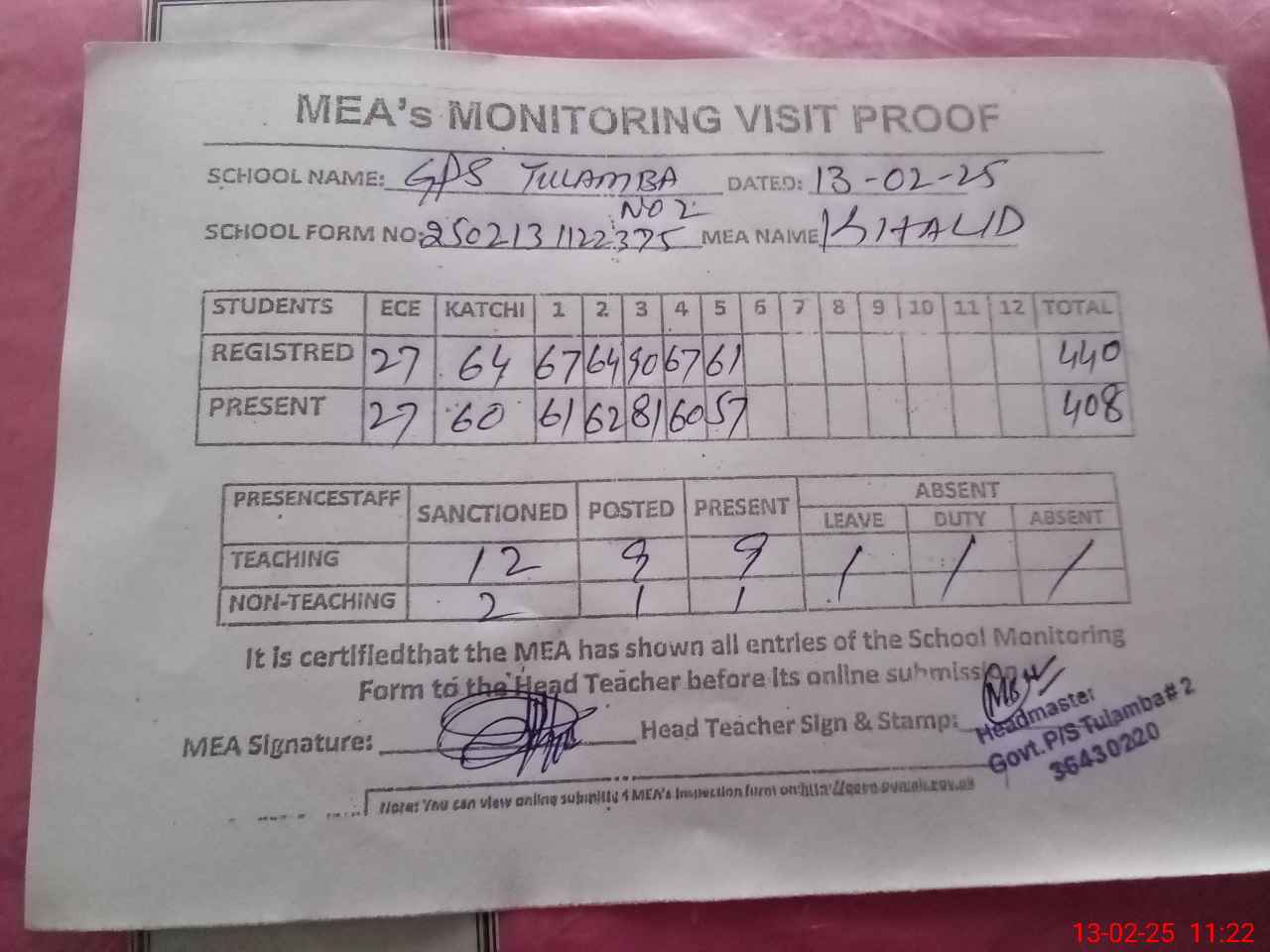 | EMIS Code: 36430220 | Name of School: GPS TULAMBA NO.2 | |||