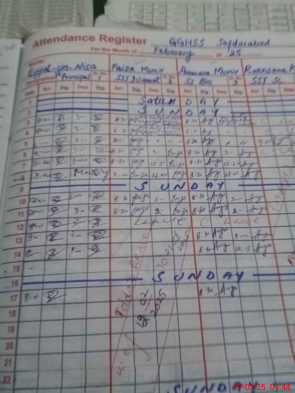 | CNIC | Full Name | Designation | R/C | Absence During Last Calender Month |