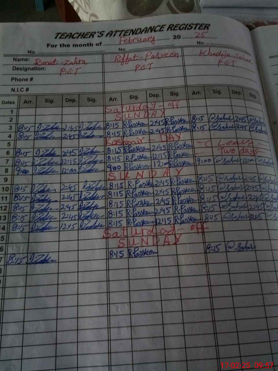 | Name: IS**** ZA**** Designation: (School Headmaster's/Headmistress's) PST/PTC/JV Phone/Cell Number: 03**** |