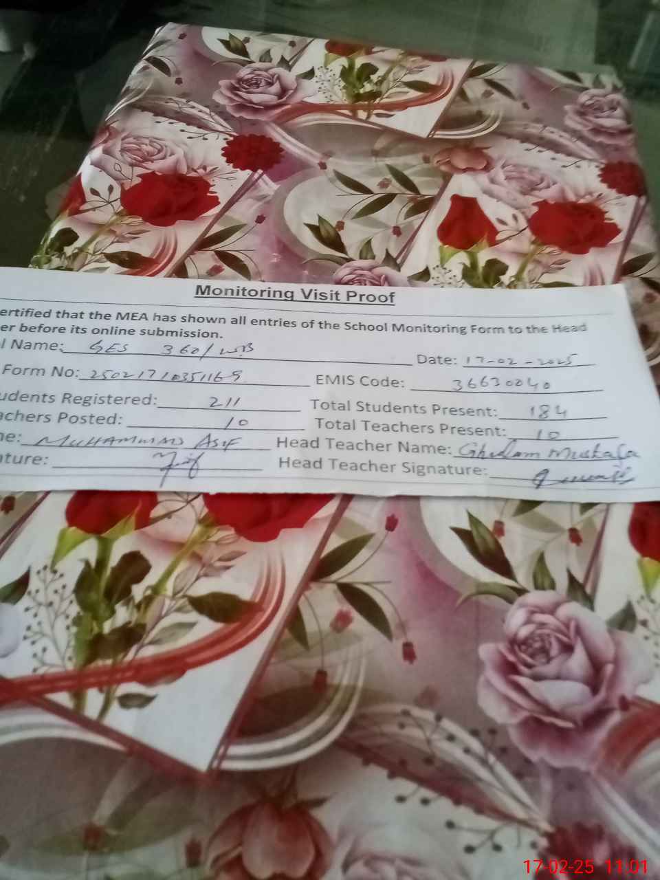 | EMIS Code: 36630040 | Name of School: GES CHAK NO. 360/WB | |||