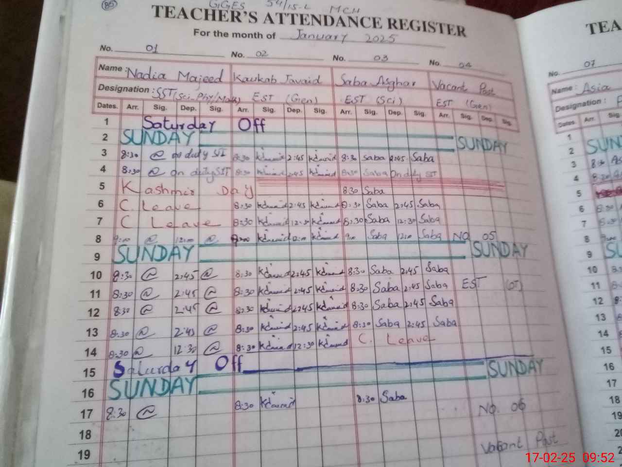 | CNIC | Full Name | Designation | R/C | Absence During Last Calender Month |