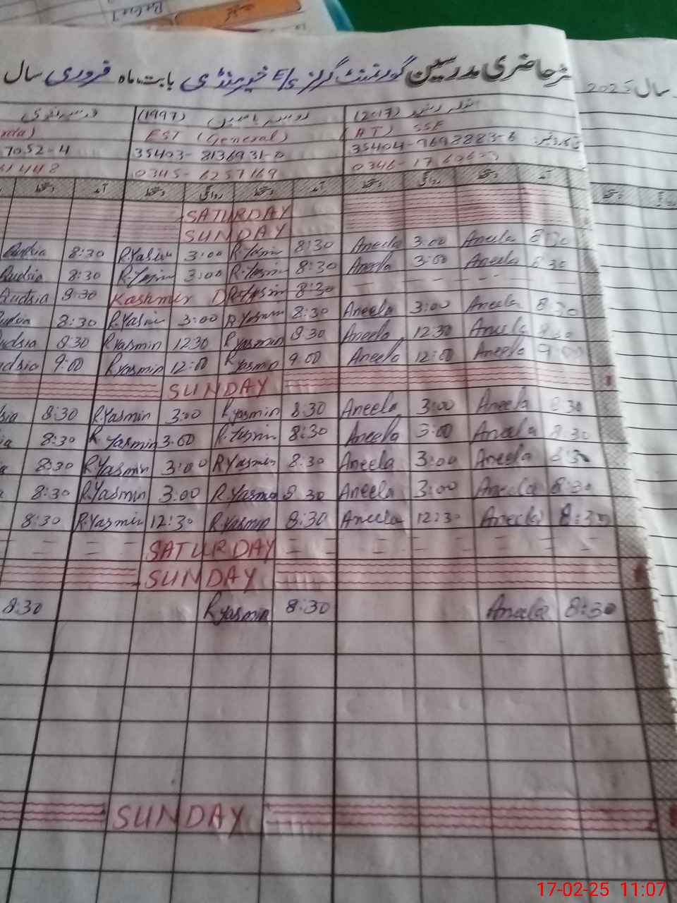 | CNIC | Full Name | Designation | R/C | Absence During Last Calender Month |