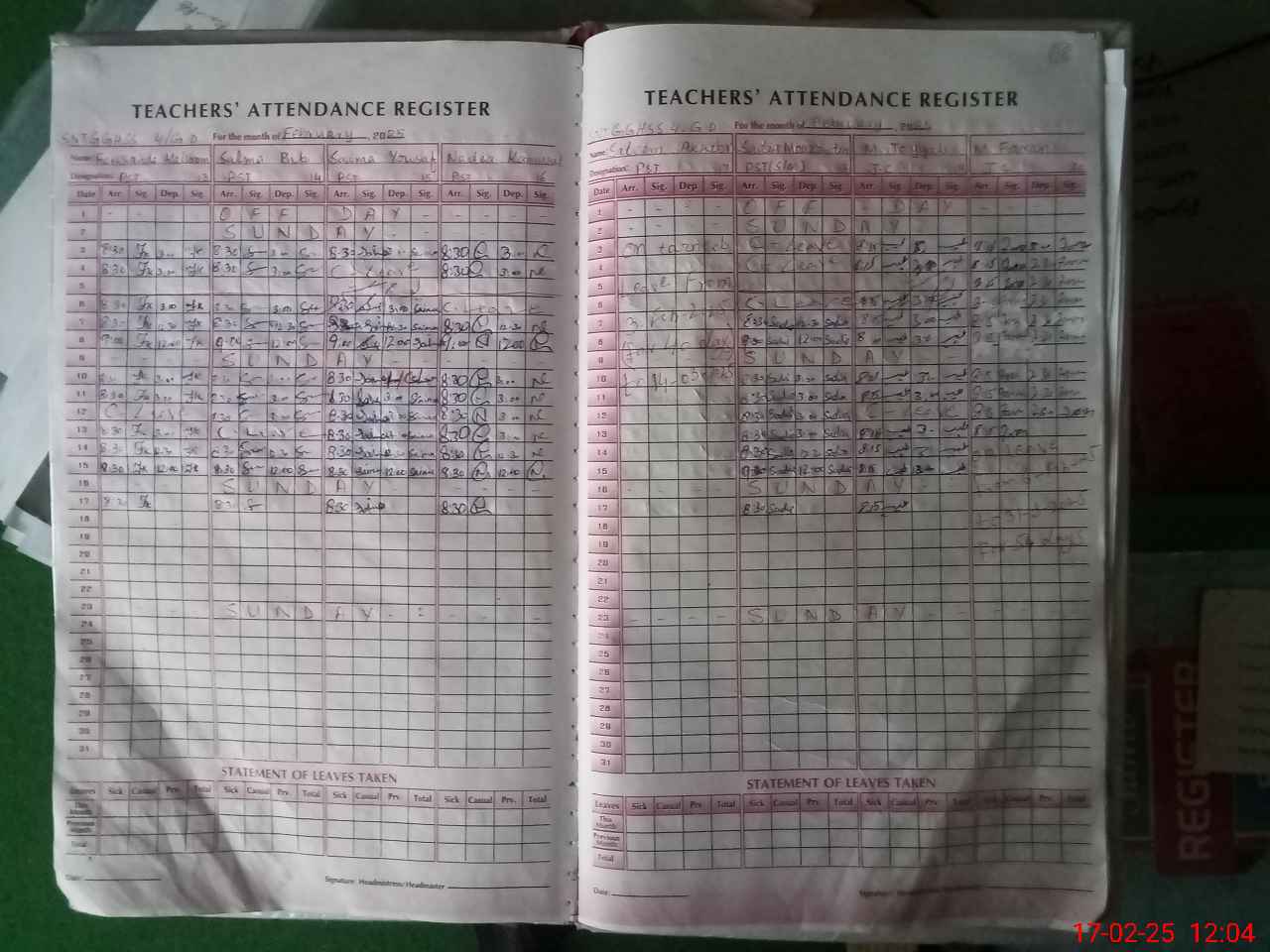 | Leave | Duty | Absent | Maternity | Medical | Ex- Pak |