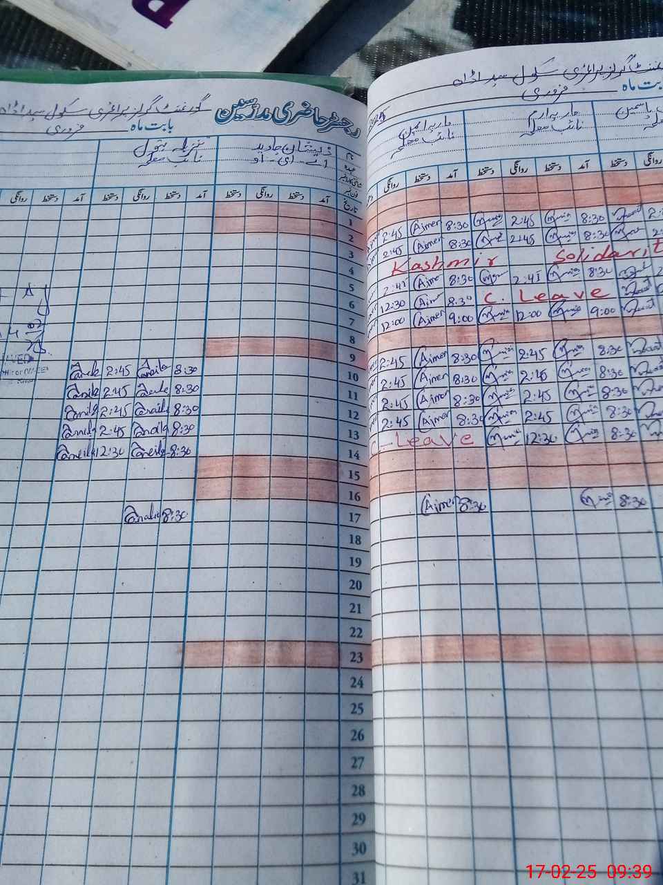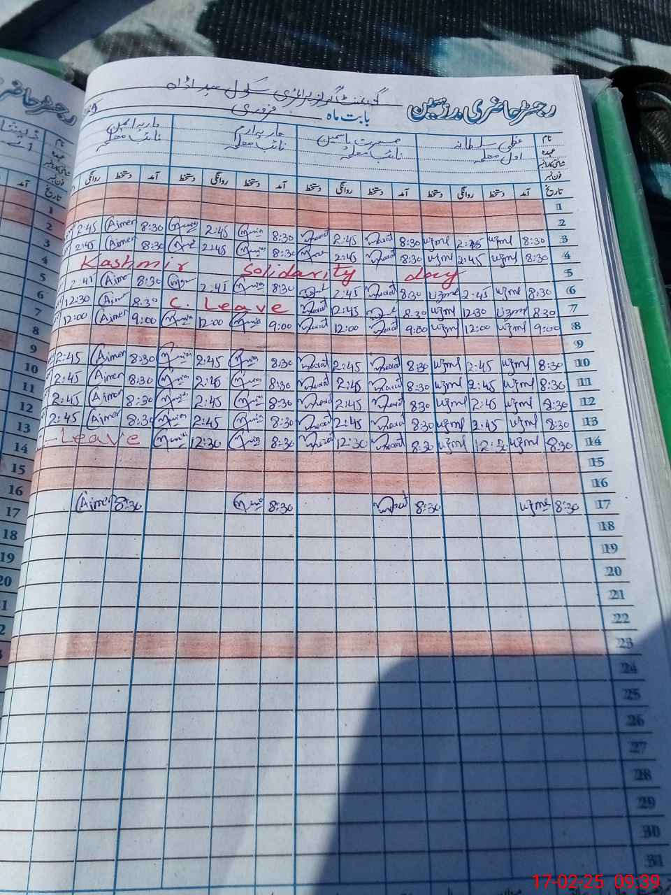 | CNIC | Full Name | Designation | R/C | Absence During Last Calender Month |