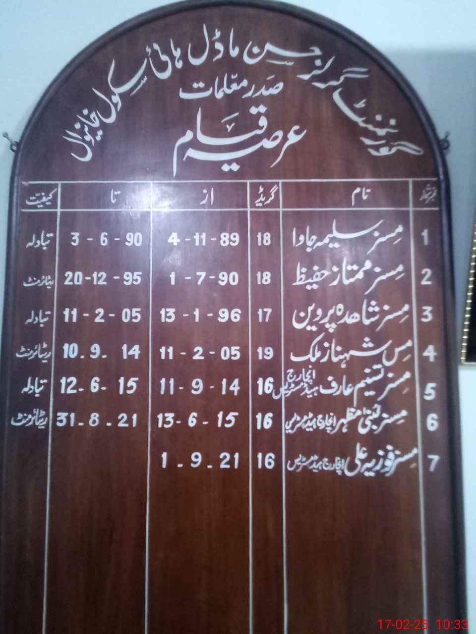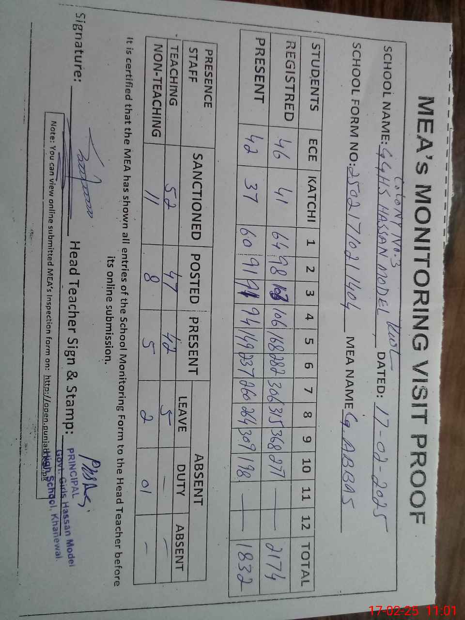 | EMIS Code: 36420043 | Name of School: GGHS HASSAN MODEL, COLONY NO.3 KHANEWAL | |||
