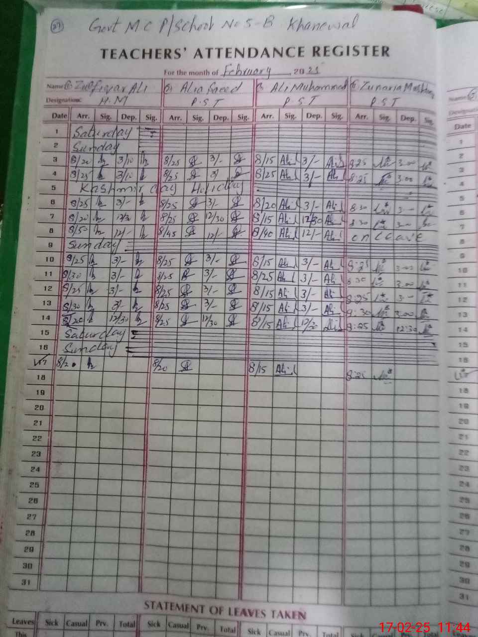 | EMIS Code: 36420634 | Name of School: GPS MC 5-B KHANEWAL | |||