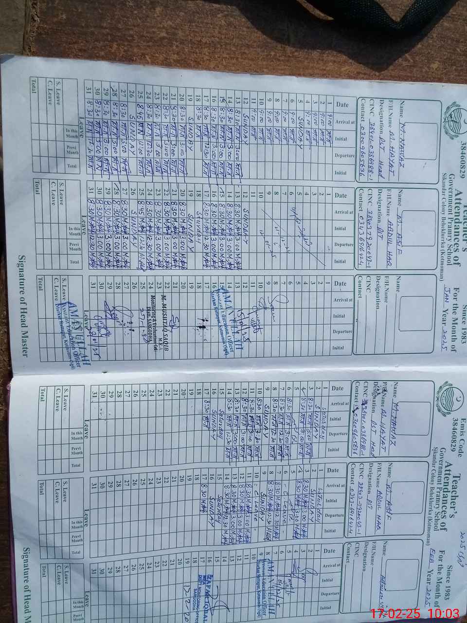 | Name: MU**** NA**** Designation: (School Headmaster's/Headmistress's) PST Phone/Cell Number: 03**** |