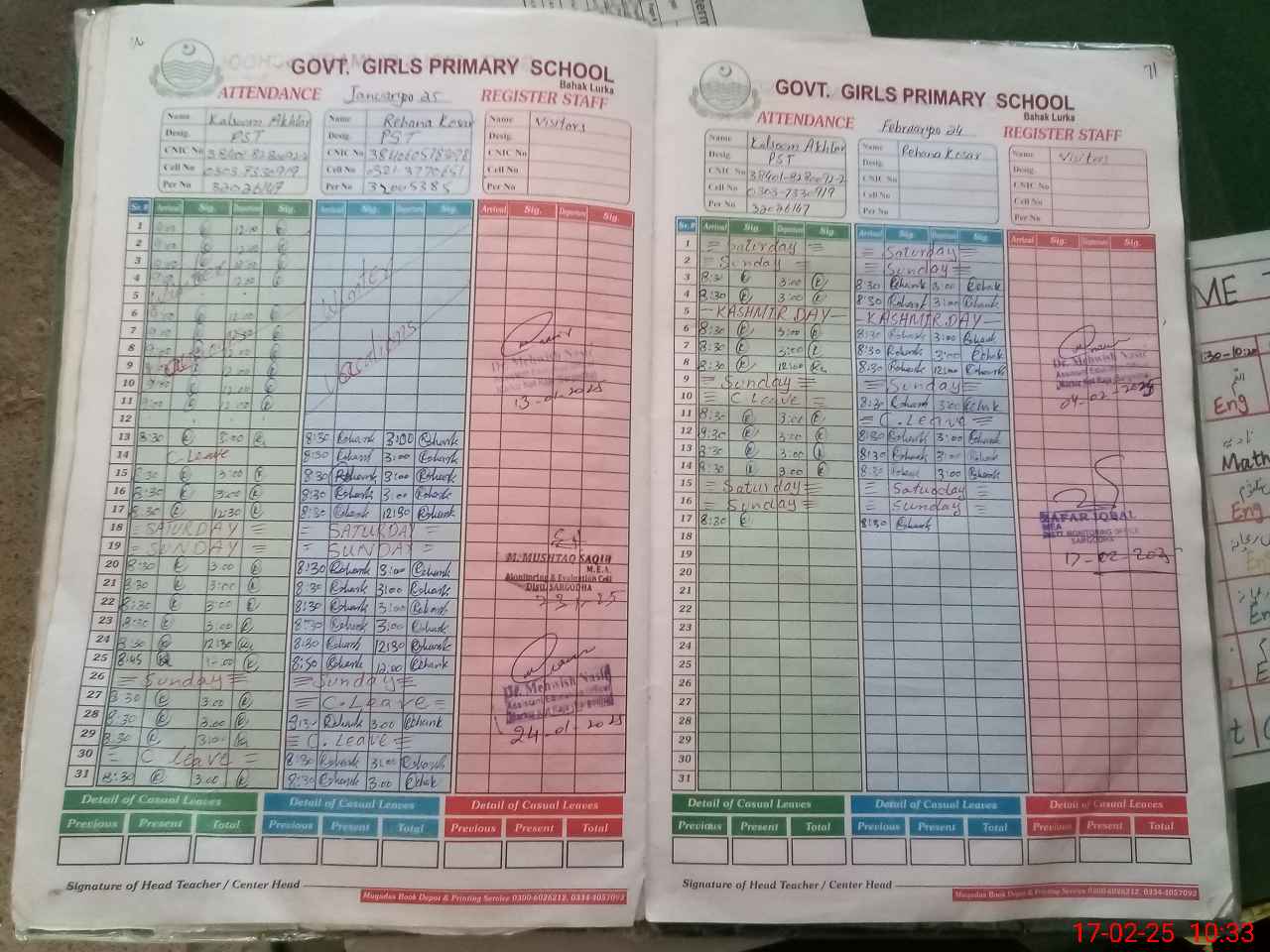 | Name: KA**** AK**** Designation: (School Headmaster's/Headmistress's) PST Phone/Cell Number: 03**** |