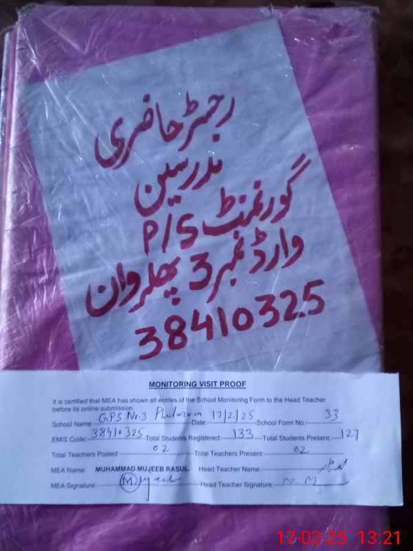 | EMIS Code: 38410325 | Name of School: GPS NO. 3 PHULARWAN | |||