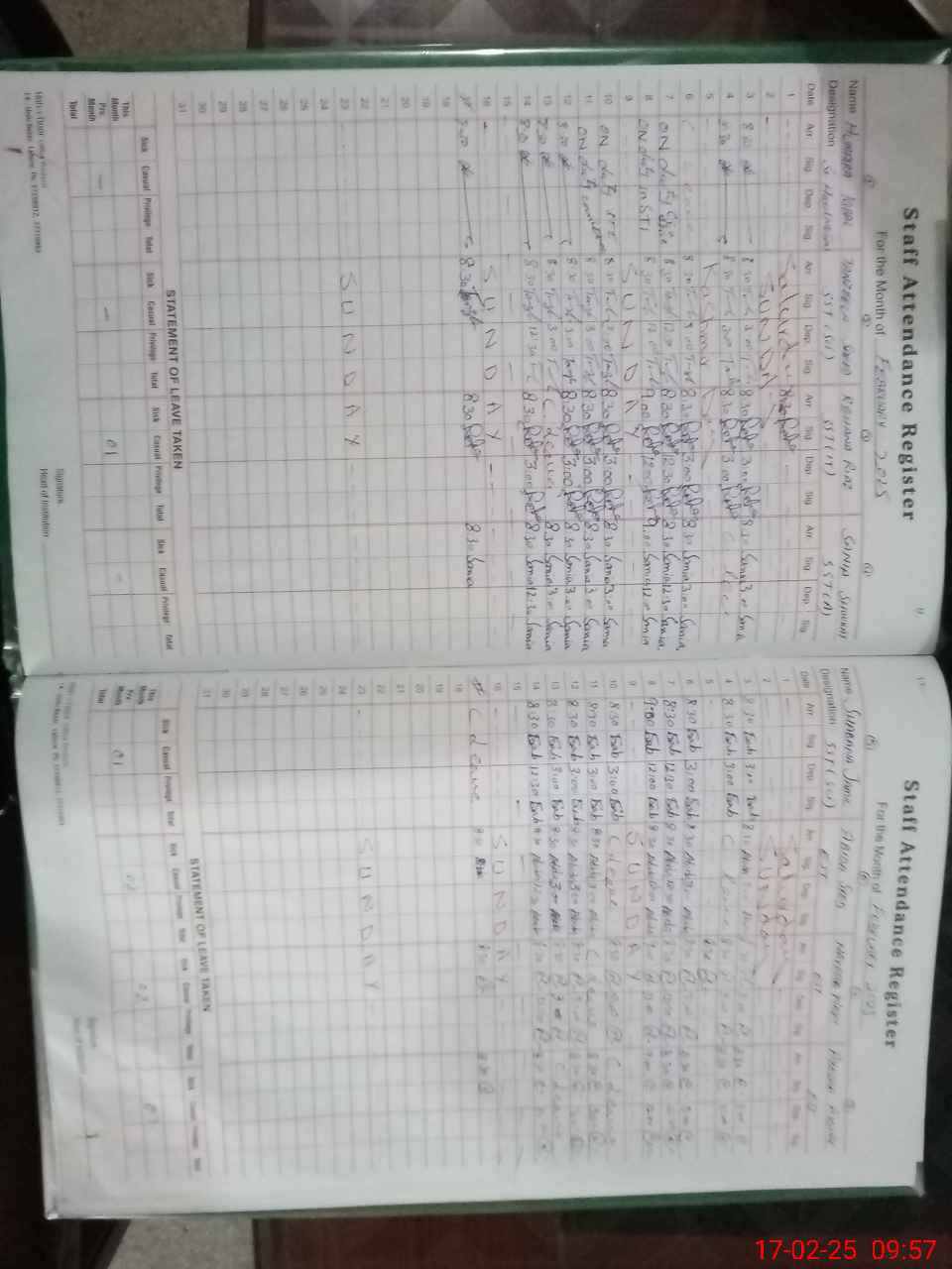 | Leave | Duty | Absent | Maternity | Medical | Ex- Pak |