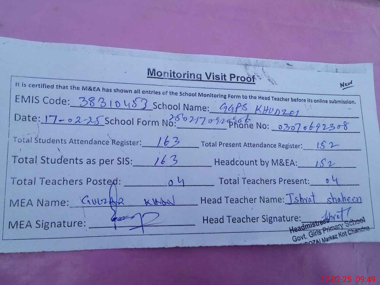 | EMIS Code: 38310453 | Name of School: GGPS KHUDZOI | |||