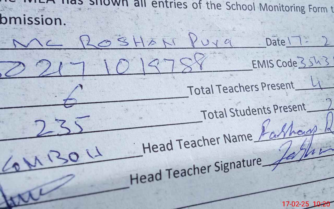 | Attendance Register | Head Teacher | MEA with School | Visit Proof |