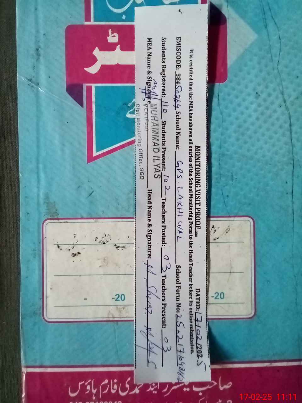 | EMIS Code: 38450264 | Name of School: GPS LAKHI WAL | |||