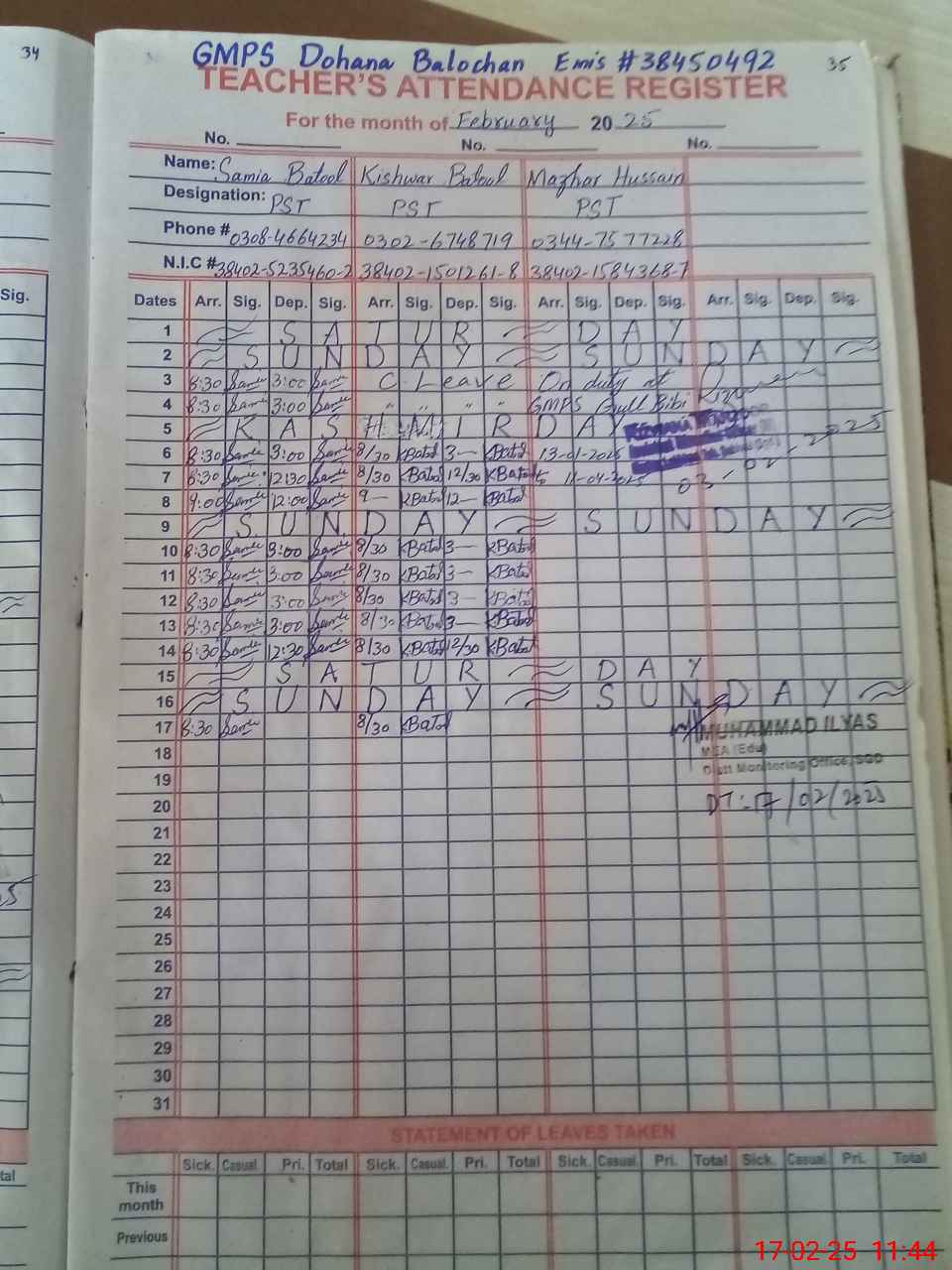 | Name: SA**** BA**** Designation: (School Headmaster's/Headmistress's) PST Phone/Cell Number: 03**** |