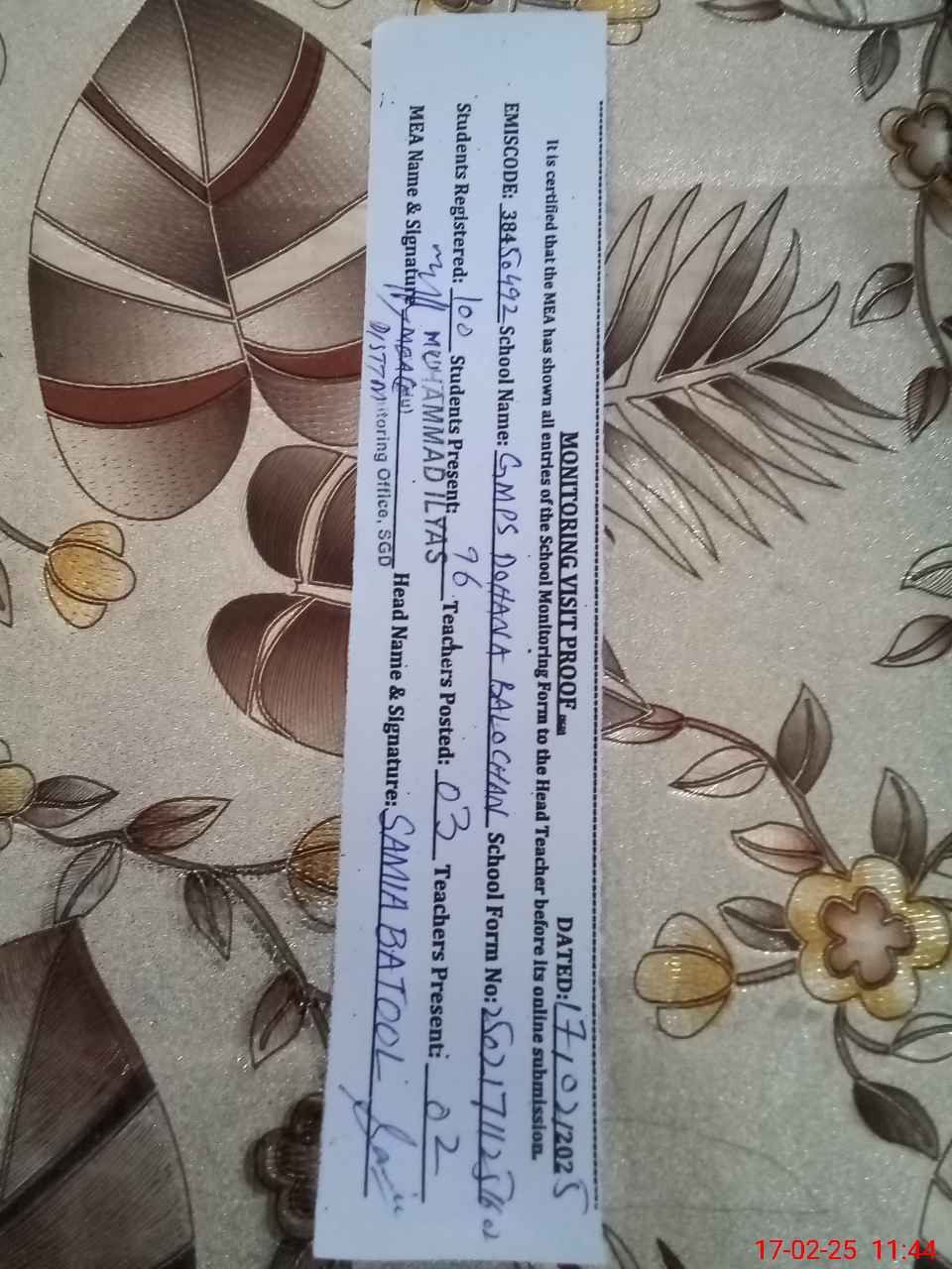 | EMIS Code: 38450492 | Name of School: GMPS DOHANA BALOCHAN | |||