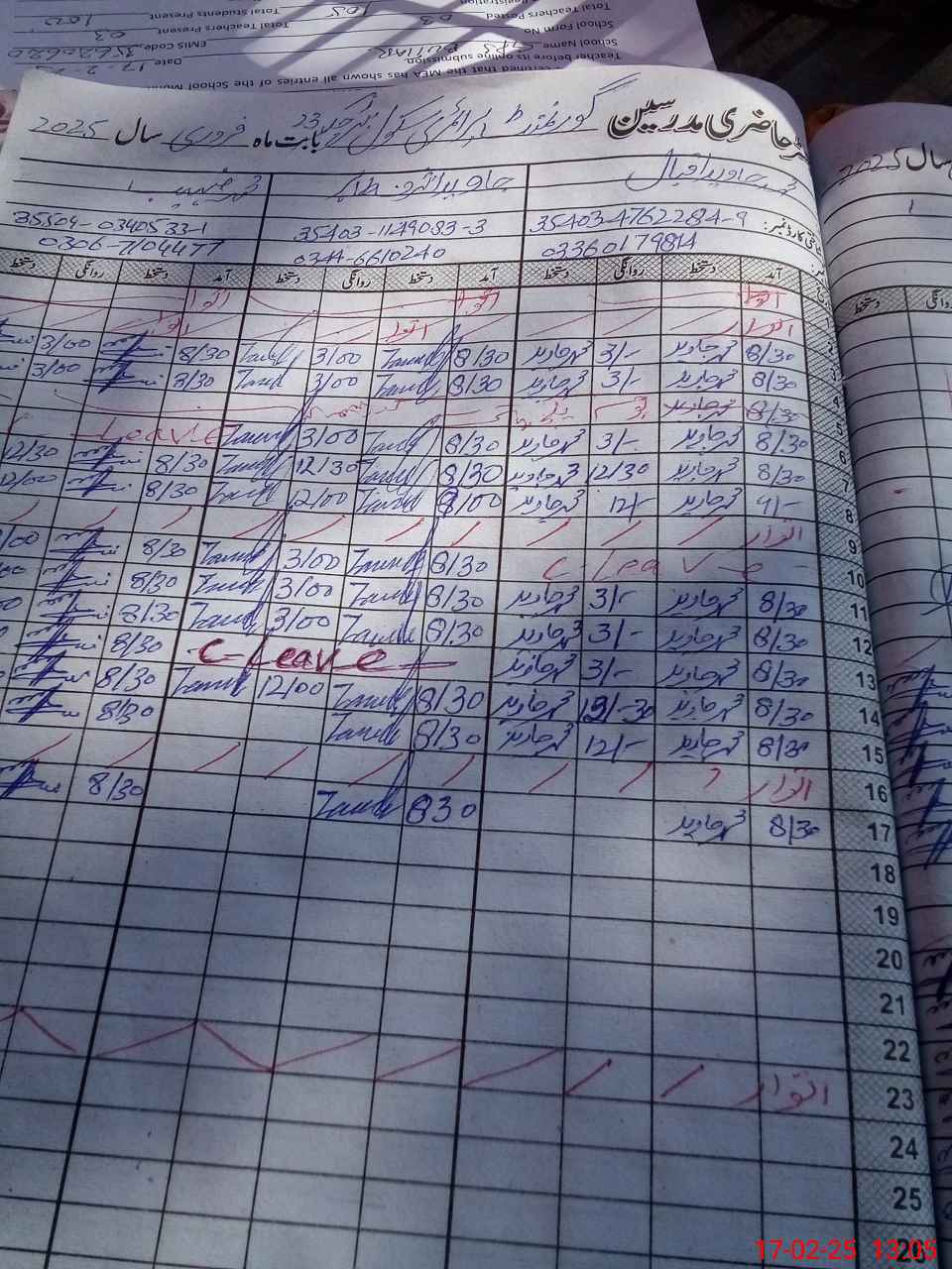 | CNIC | Full Name | Designation | R/C | Absence during last cal. month |