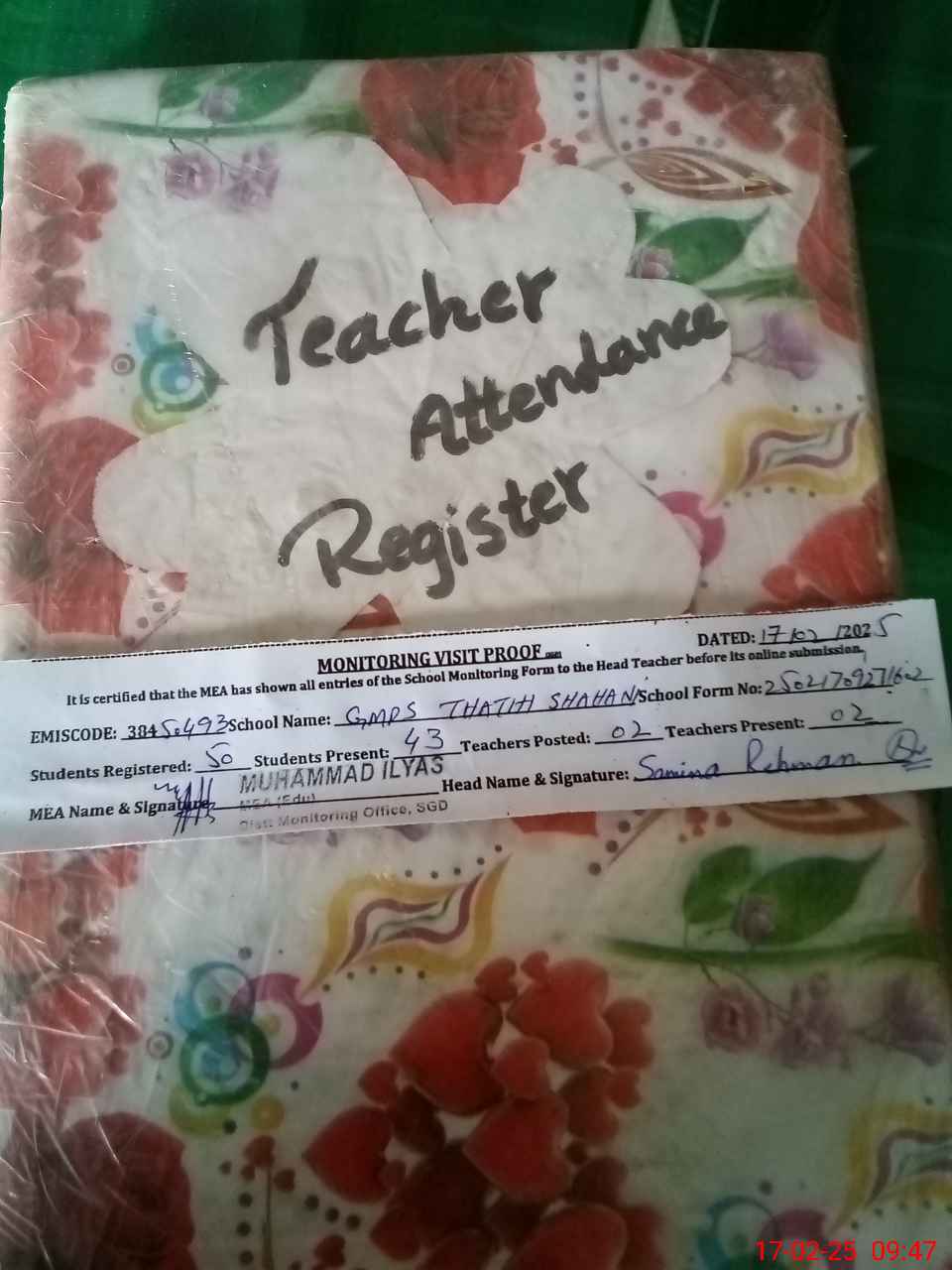 | EMIS Code: 38450493 | Name of School: GMPS THATTI SHAHANI | |||