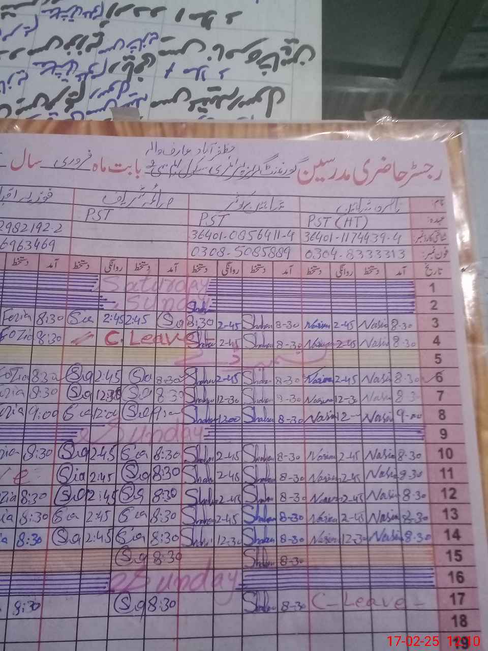 | Name: NA**** SH**** Designation: (School Headmaster's/Headmistress's) PST Phone/Cell Number: 03**** |