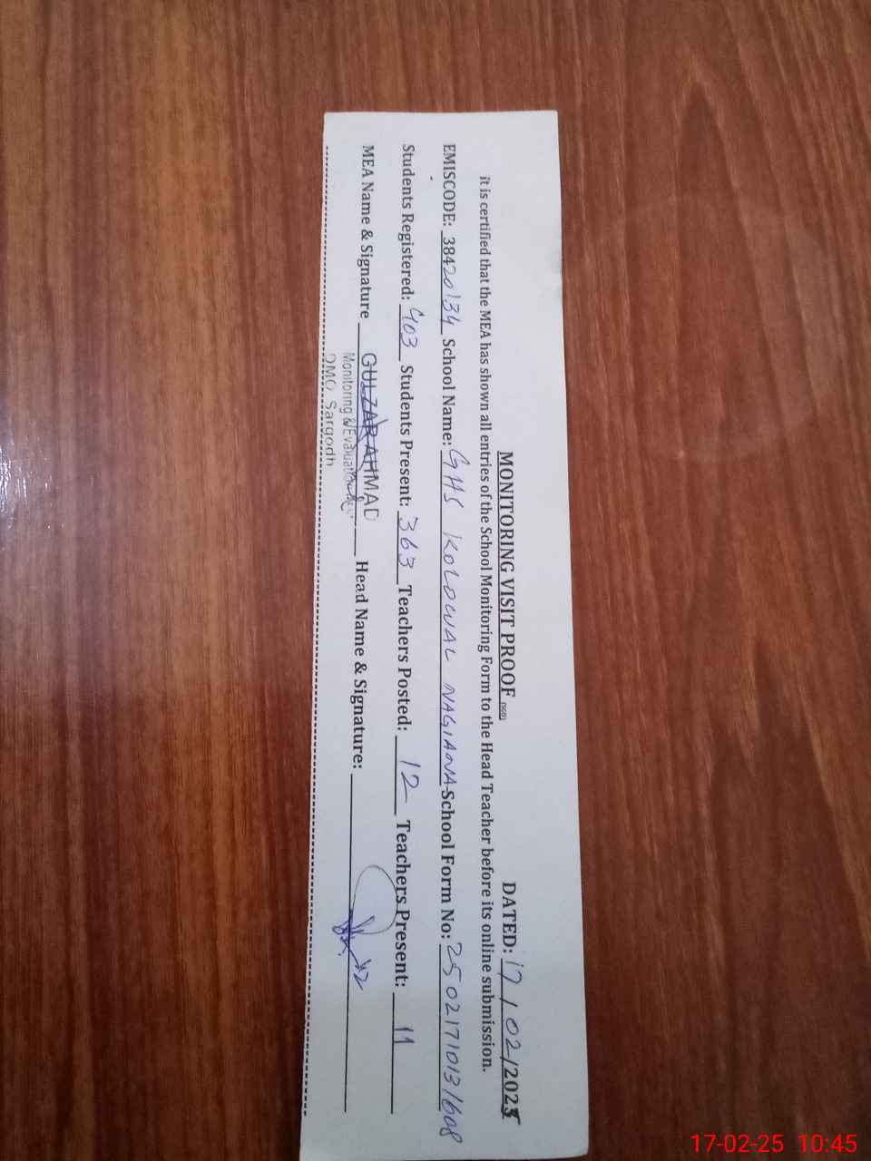 | EMIS Code: 38420134 | Name of School: GHS KOLOWAL NANGIANA | |||