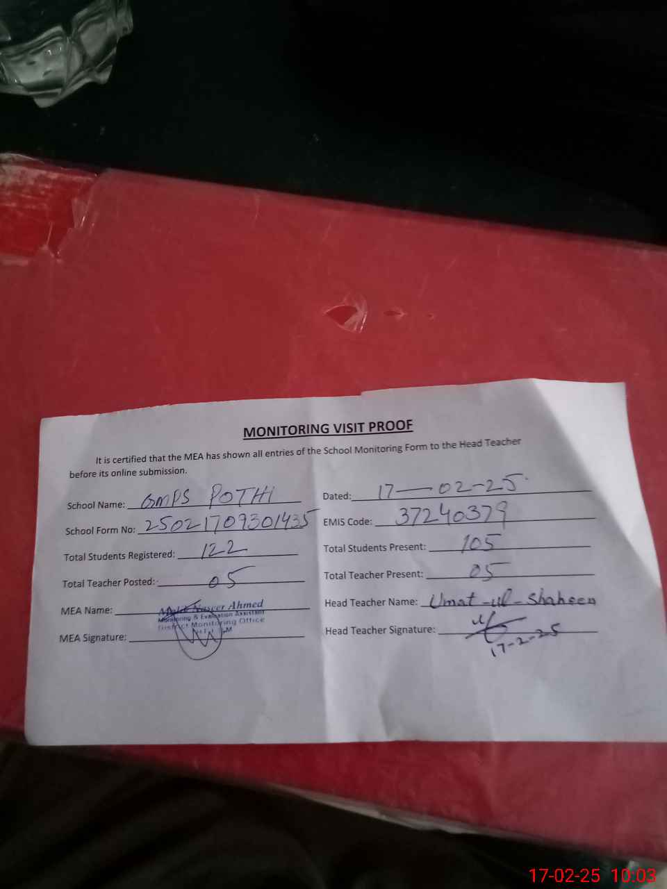 | EMIS Code: 37240379 | Name of School: GMPS POTHI | |||