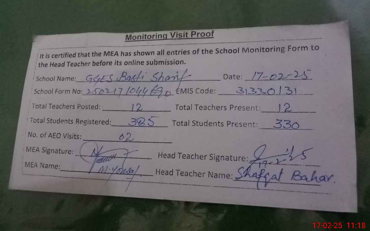 | EMIS Code: 31330131 | Name of School: GGES BASTI SHARIF | |||