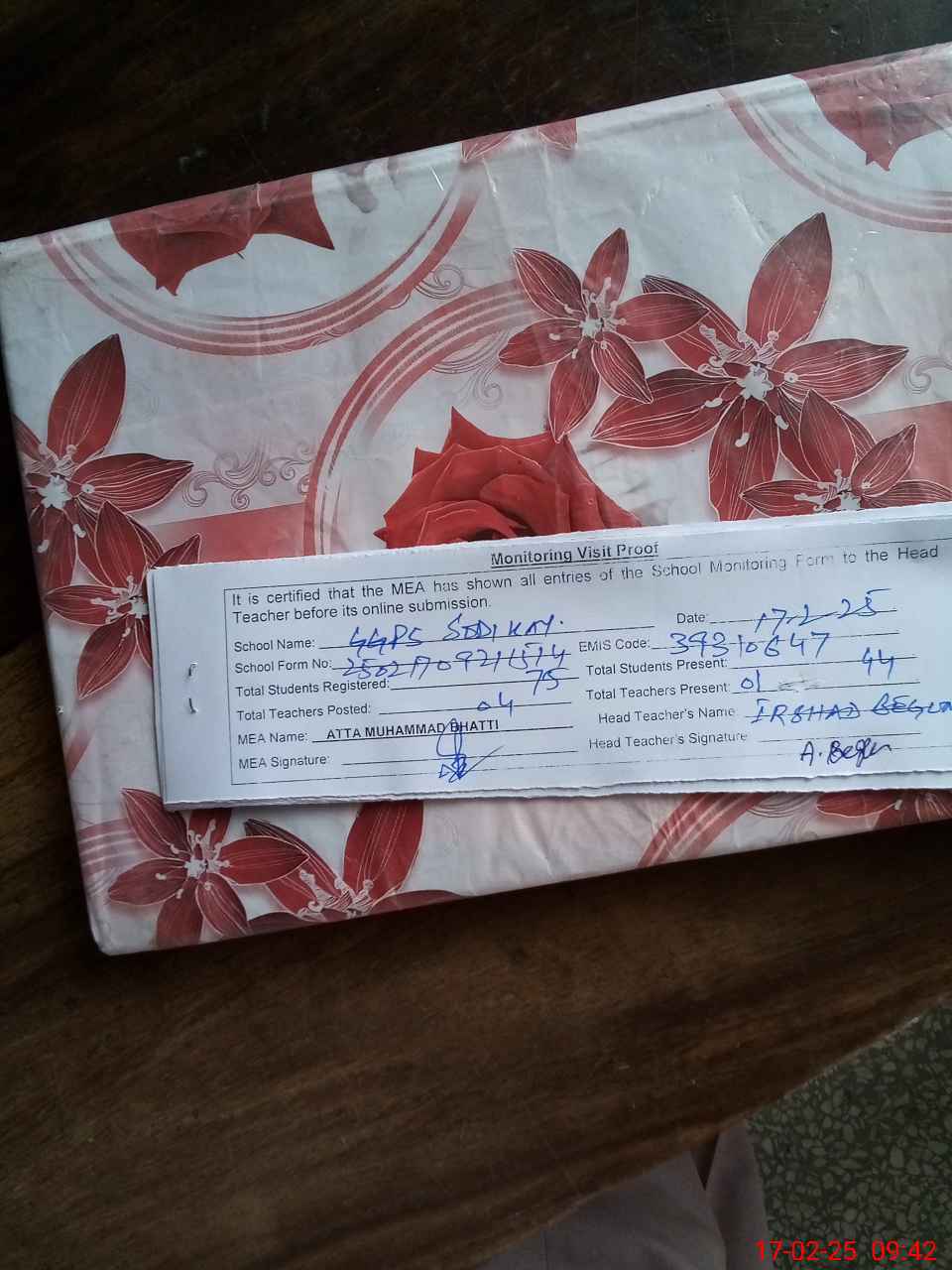 | Certified that this School was Inspected by the Undersigned MEA/DMO Today and the Information Stated Above is as Per Record. | |||||