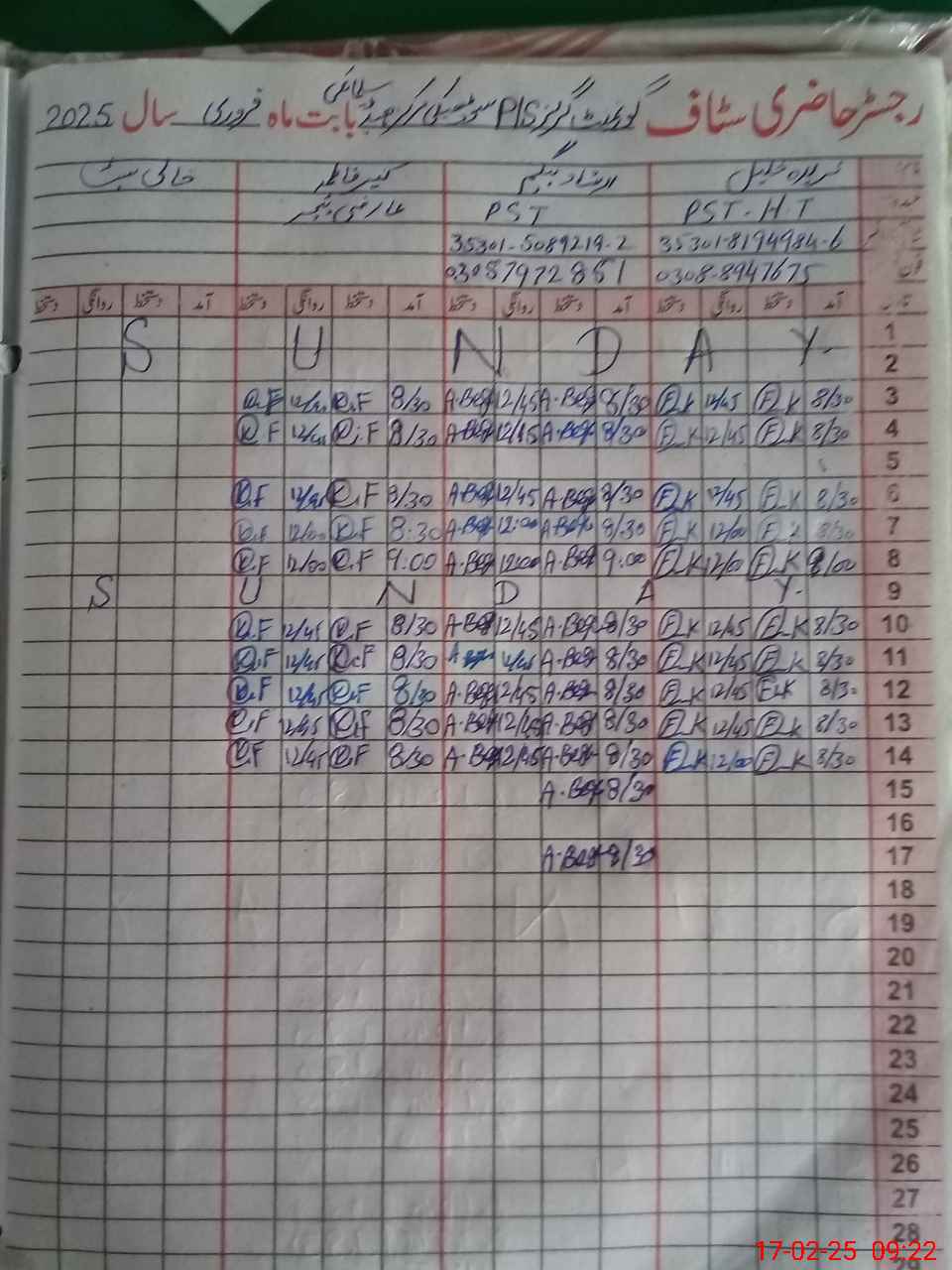 | Name: Fa**** Kh**** Designation: (School Headmaster's/Headmistress's) P S T Phone/Cell Number: 03**** |