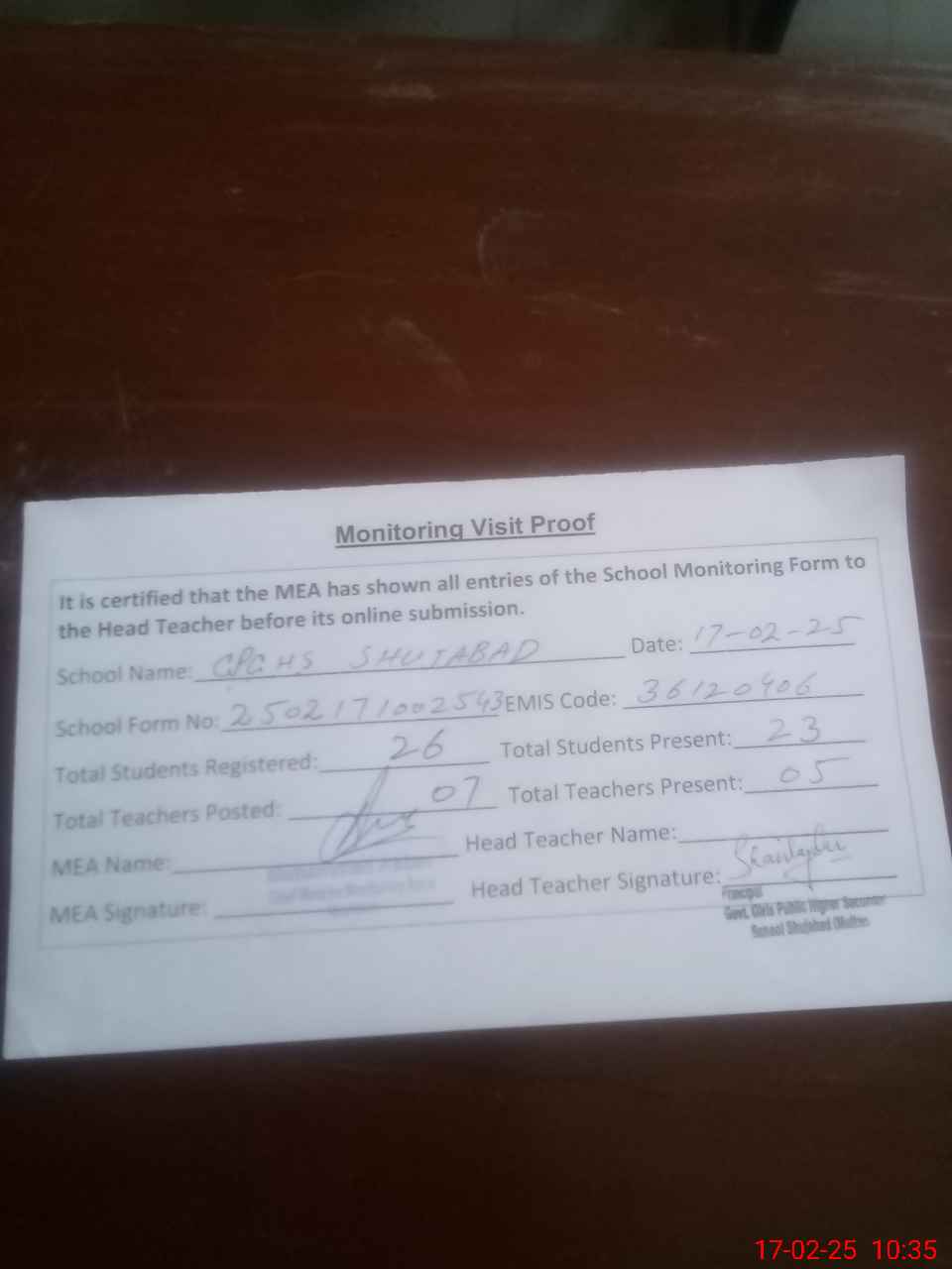 | EMIS Code: 36120406 | Name of School: Govt. Public Girls Higher Secondary School Shujabad | |||