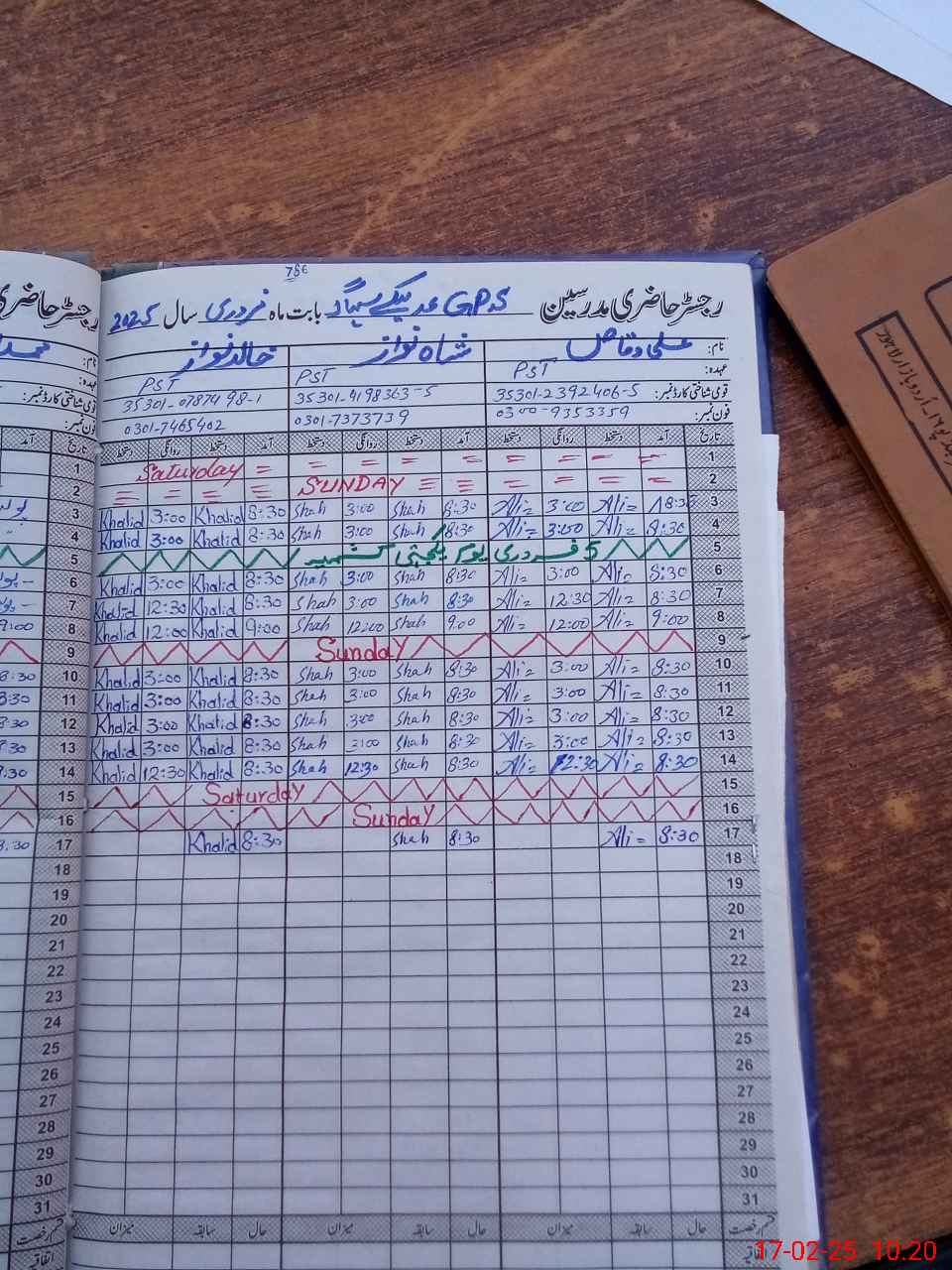 | CNIC | Full Name | Designation | R/C | Absence during last cal. month |