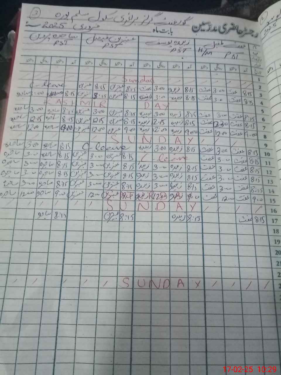 | CNIC | Full Name | Designation | R/C | Absence During Last Calender Month |