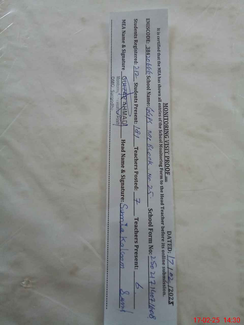 | EMIS Code: 38420666 | Name of School: GGPS MC BLOCK NO.25 SARGODHA | |||