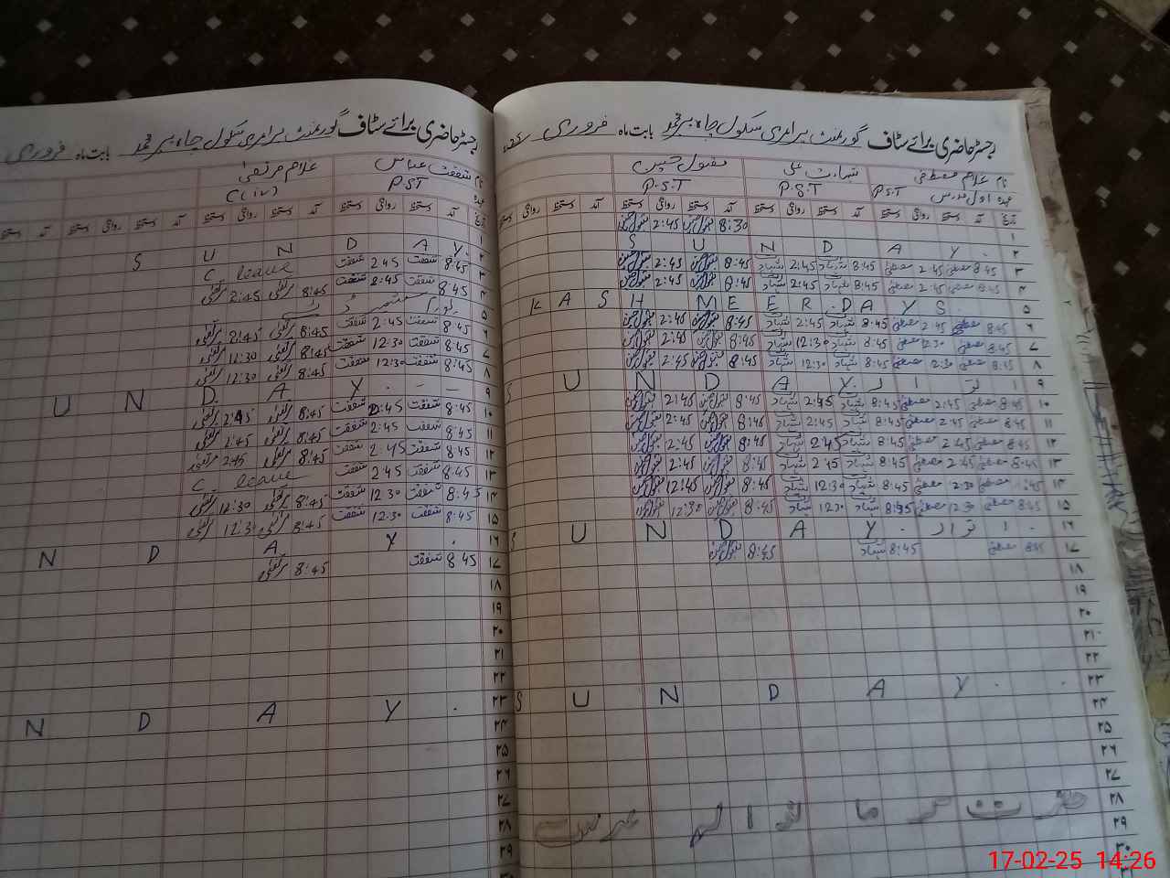 | CNIC | Full Name | Designation | R/C | Absence During Last Calender Month |