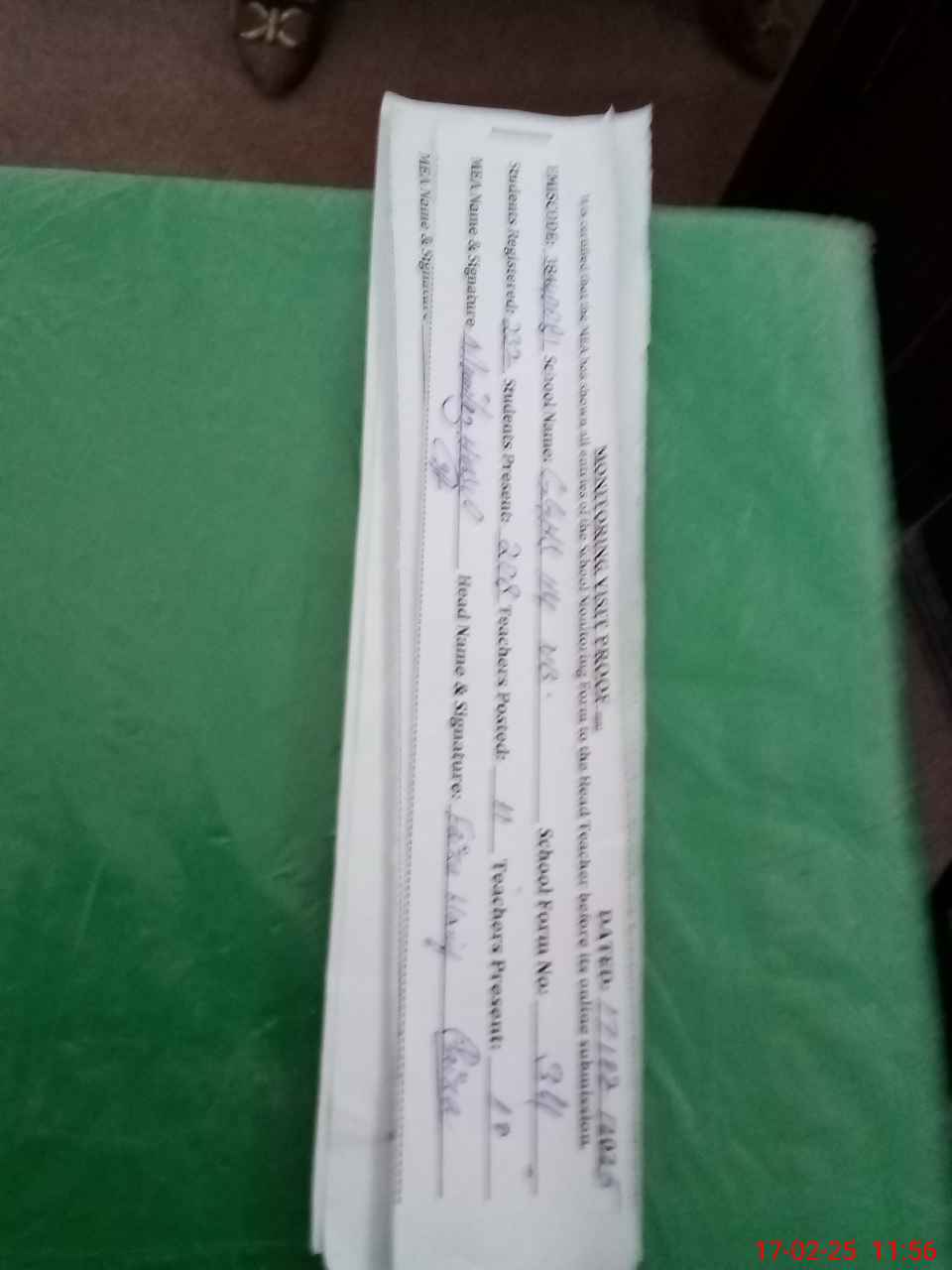 | Attendance Register | Head Teacher | MEA with School | Visit Proof |