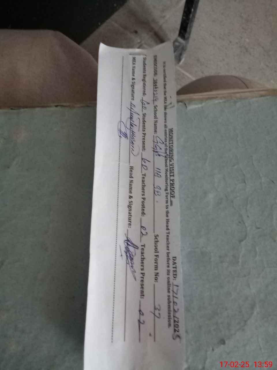 | Attendance Register | Head Teacher | MEA with School | Visit Proof |