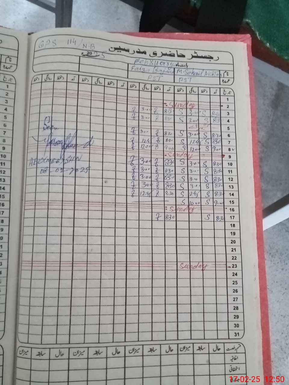 | CNIC | Full Name | Designation | R/C | Absence During Last Calender Month |