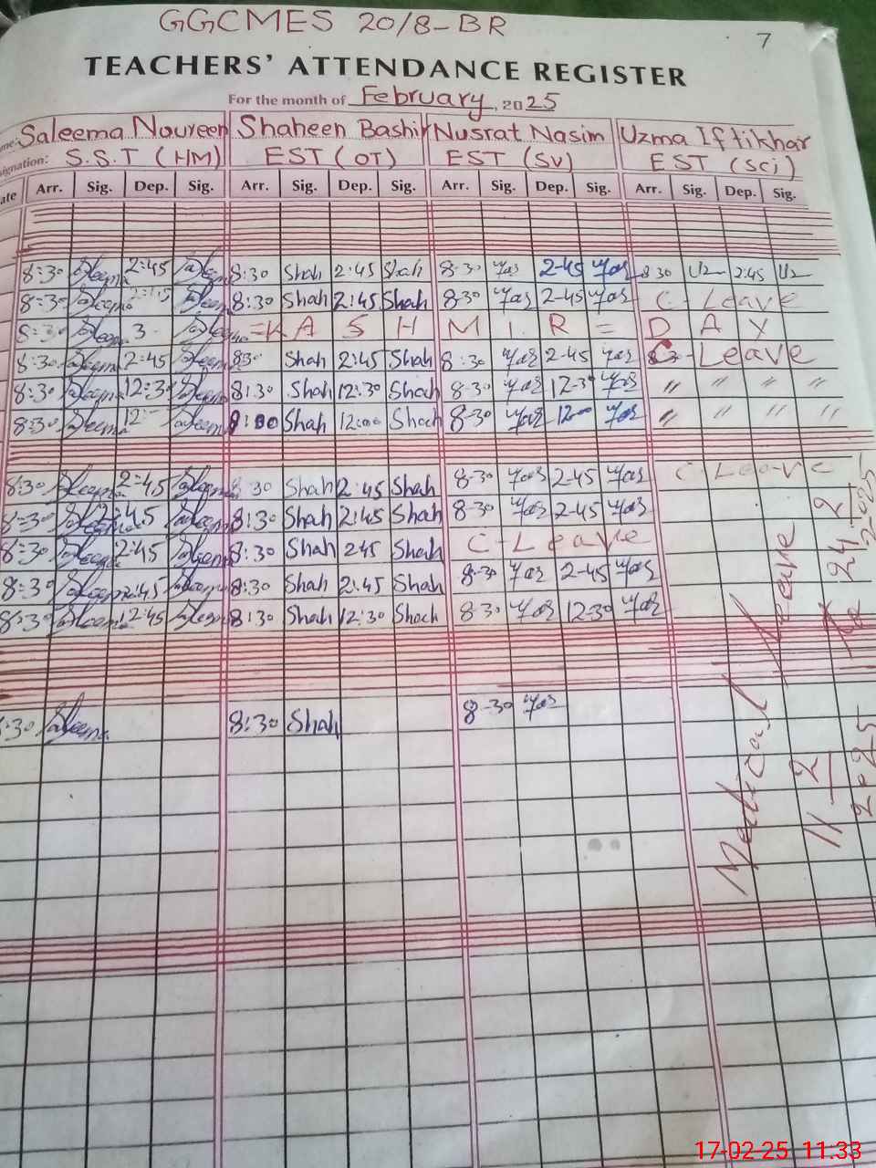 | CNIC | Full Name | Designation | R/C | Absence During Last Calender Month |