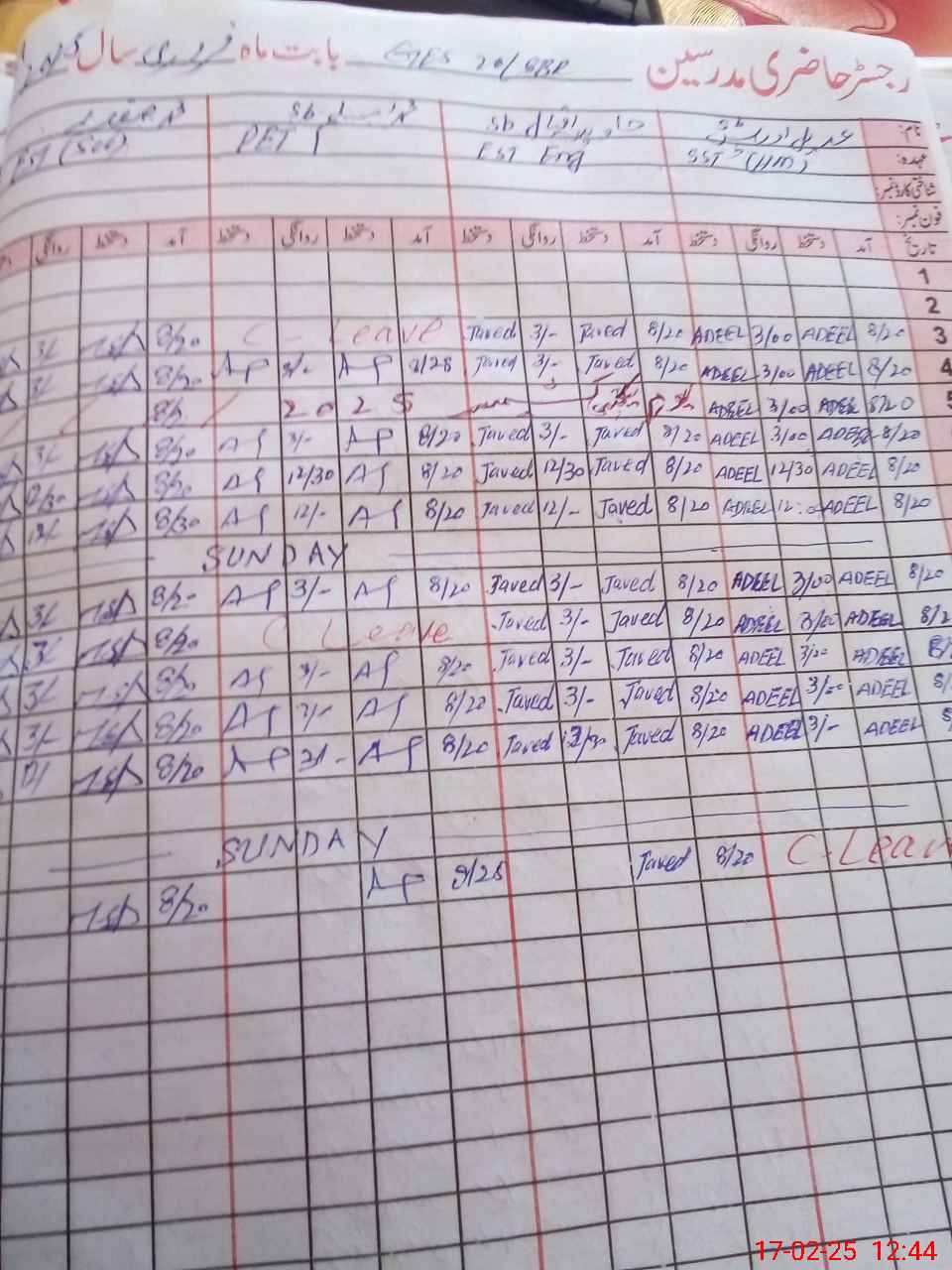 | CNIC | Full Name | Designation | R/C | Absence During Last Calender Month |