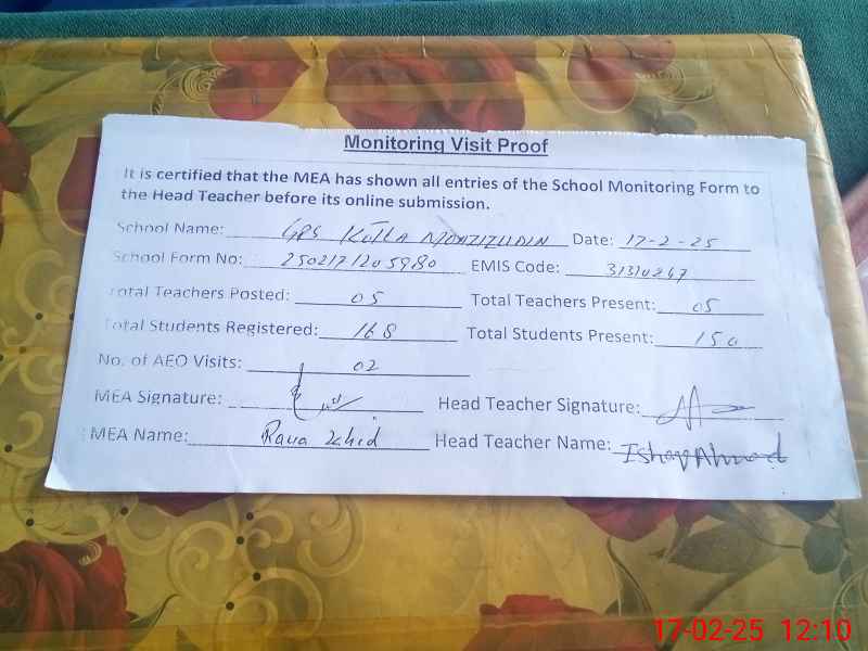 | EMIS Code: 31310247 | Name of School: GPS KOTLA MOAZIZ-UD-DIN | |||