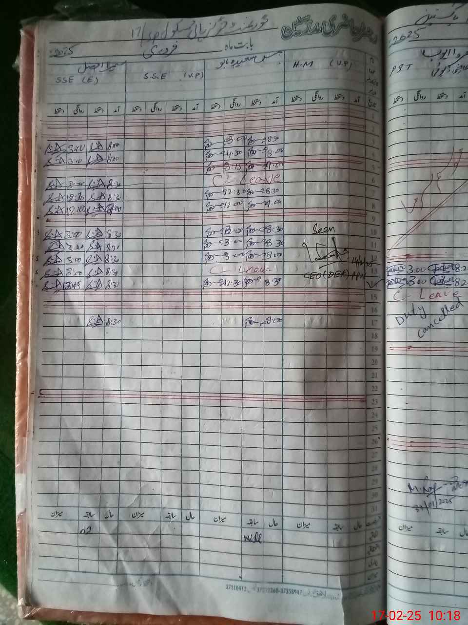 | CNIC | Full Name | Designation | R/C | Absence During Last Calender Month |