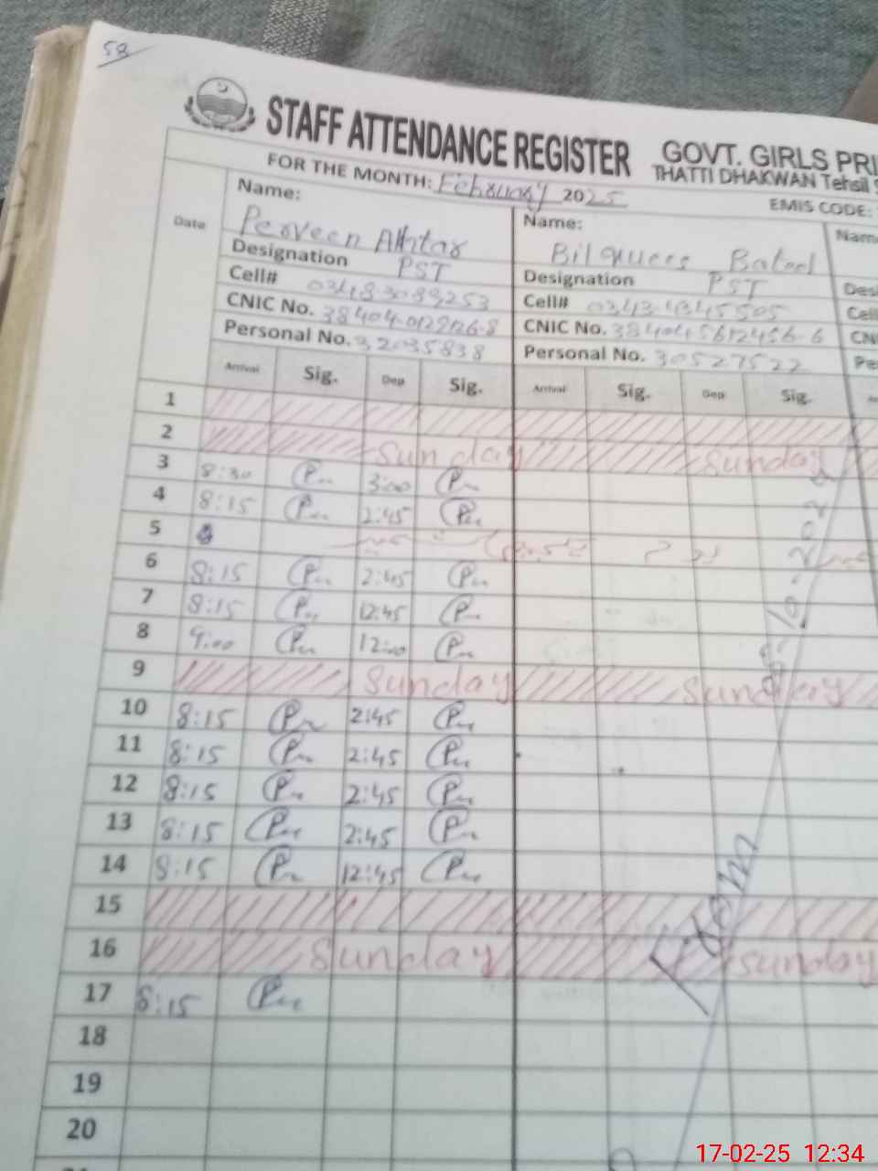 | Name: PA**** AK**** Designation: (School Headmaster's/Headmistress's) PST (Sc-Math) Phone/Cell Number: 03**** |