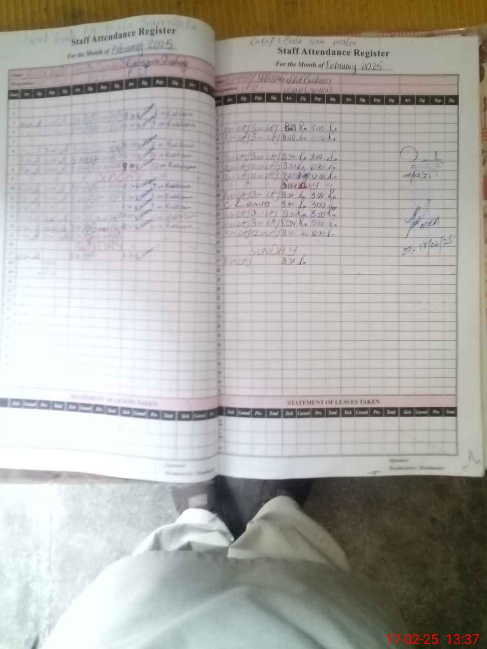 | CNIC | Full Name | Designation | R/C | Absence During Last Calender Month |