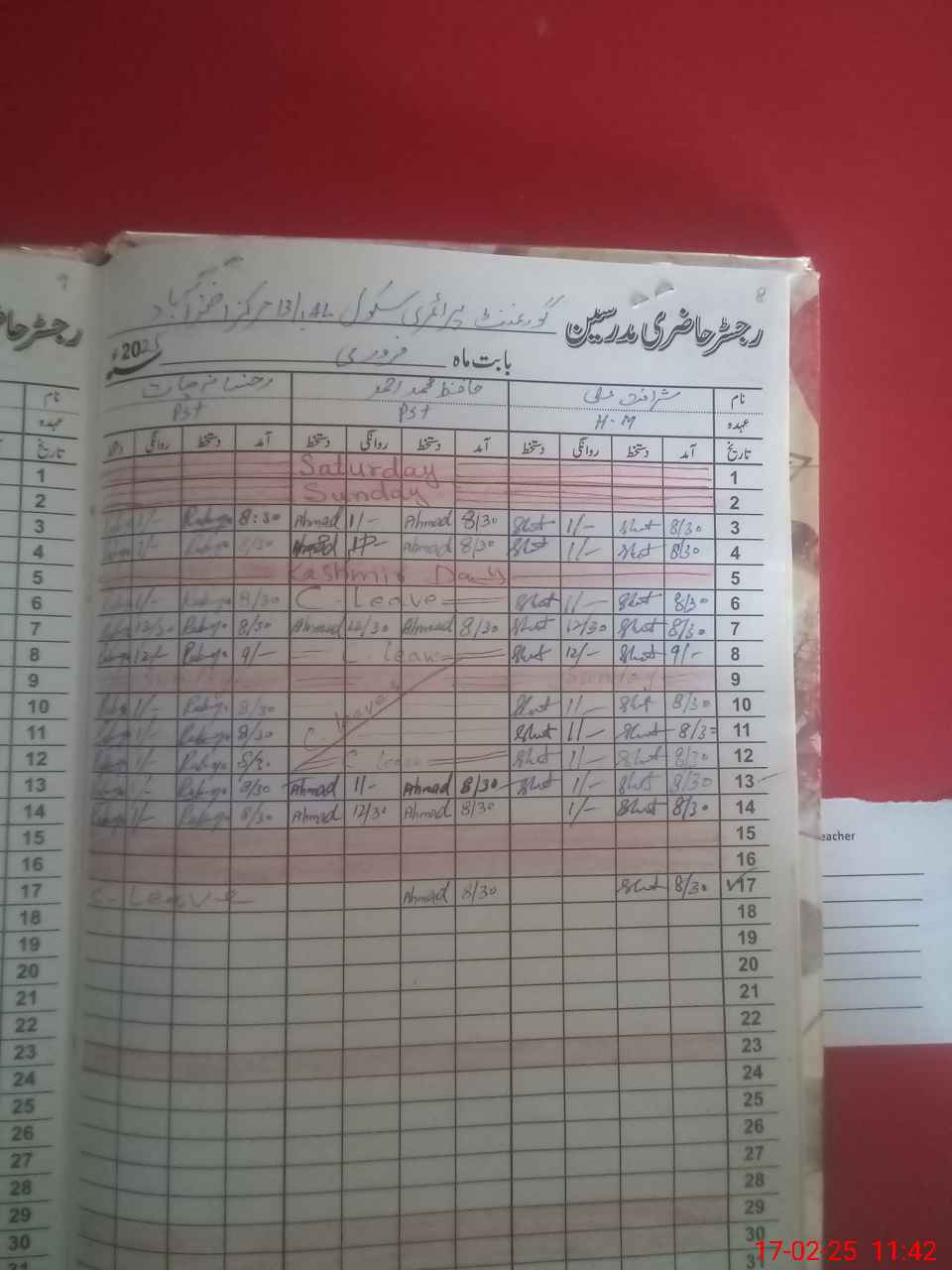 | CNIC | Full Name | Designation | R/C | Absence During Last Calender Month |