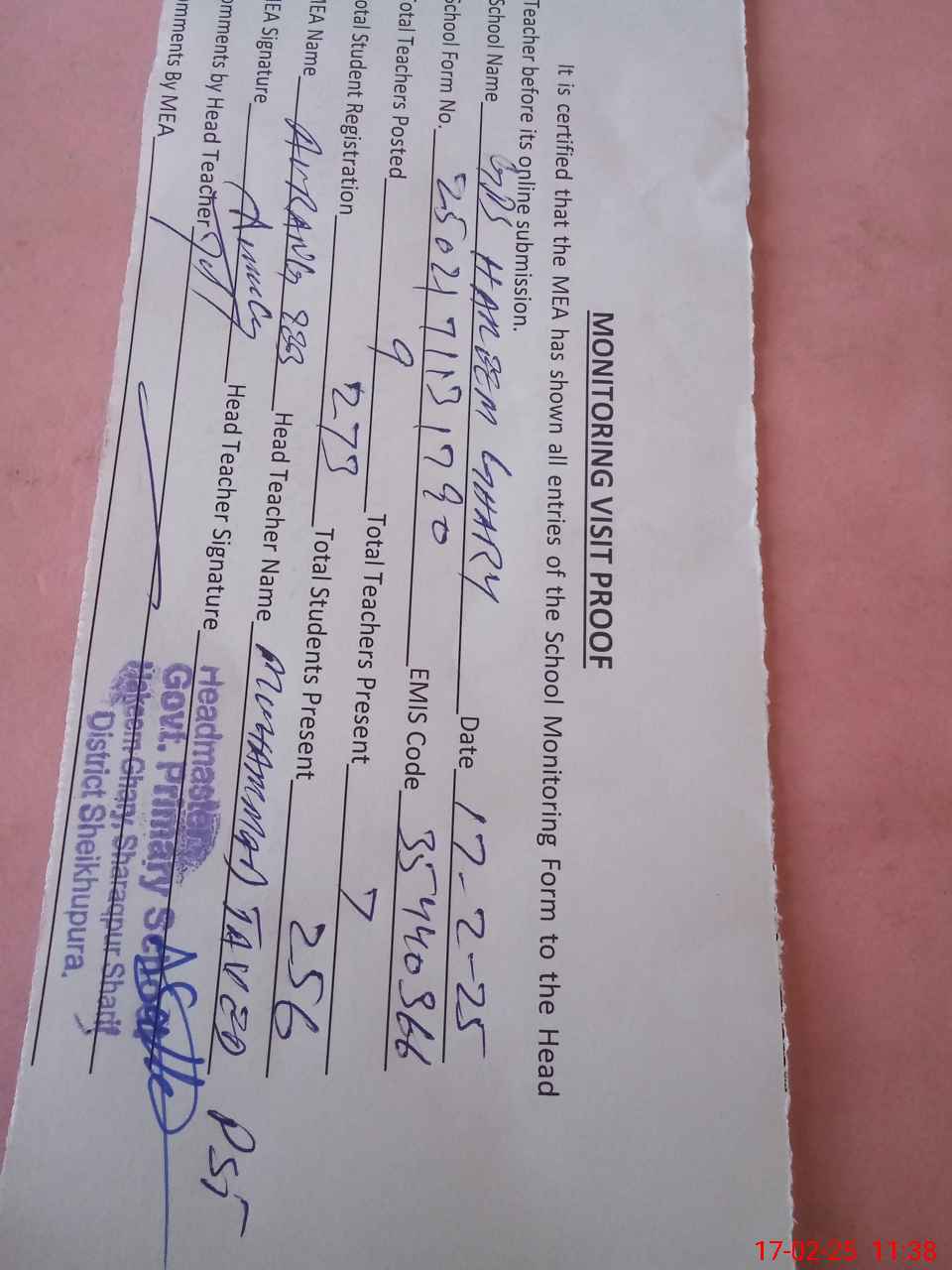 | EMIS Code: 35440366 | Name of School: GPS HAKEEM GHARY | |||