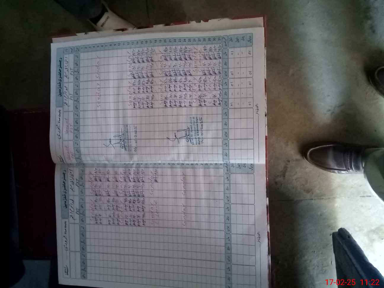 | CNIC | Full Name | Designation | R/C | Absence During Last Calender Month |