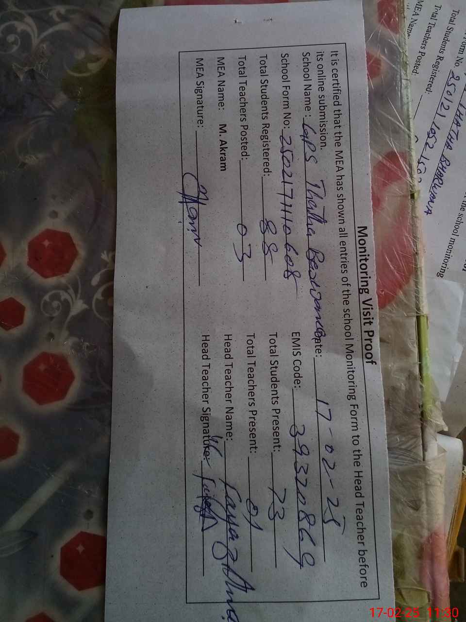 | EMIS Code: 39320869 | Name of School: GPS THATHA BHARWANA | |||