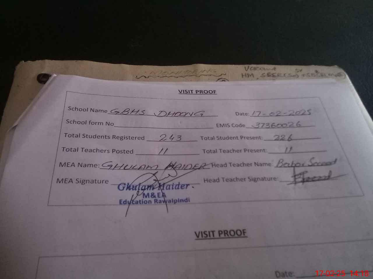 | EMIS Code: 37360026 | Name of School: GHS DHONG | |||